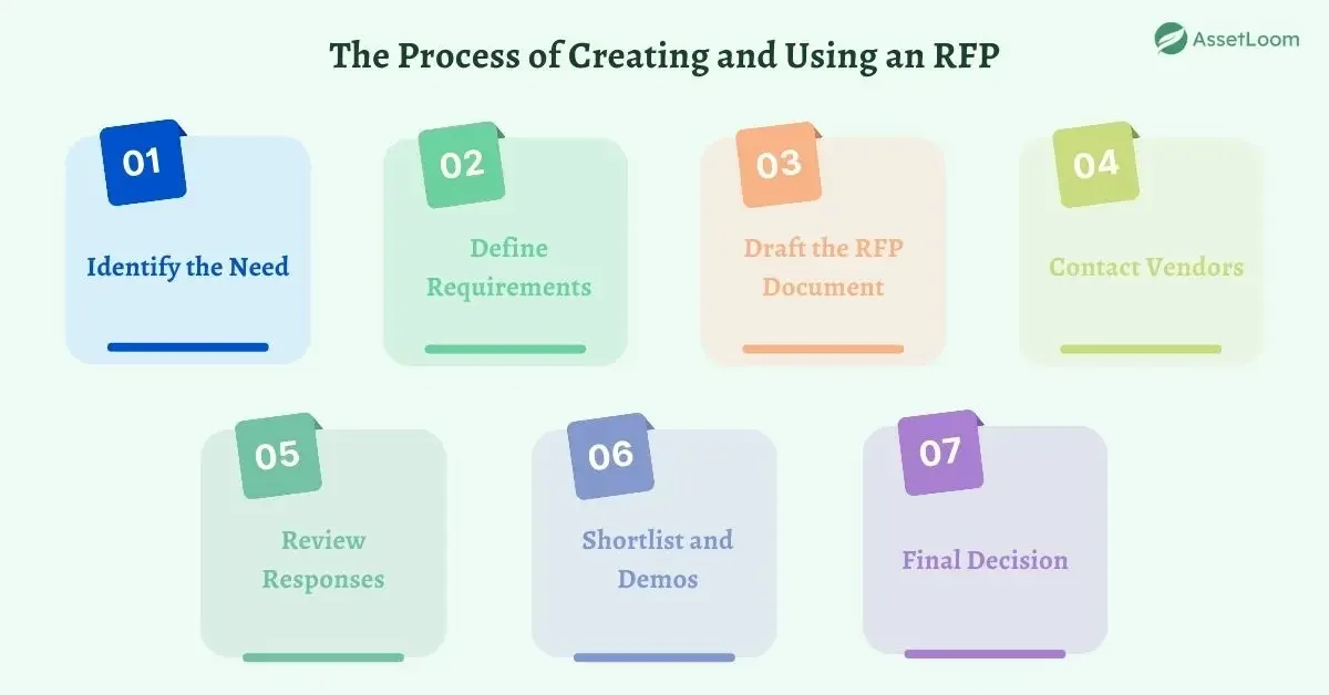 An RFP follows a structured process. Here’s how it typically works in IT Asset Management: