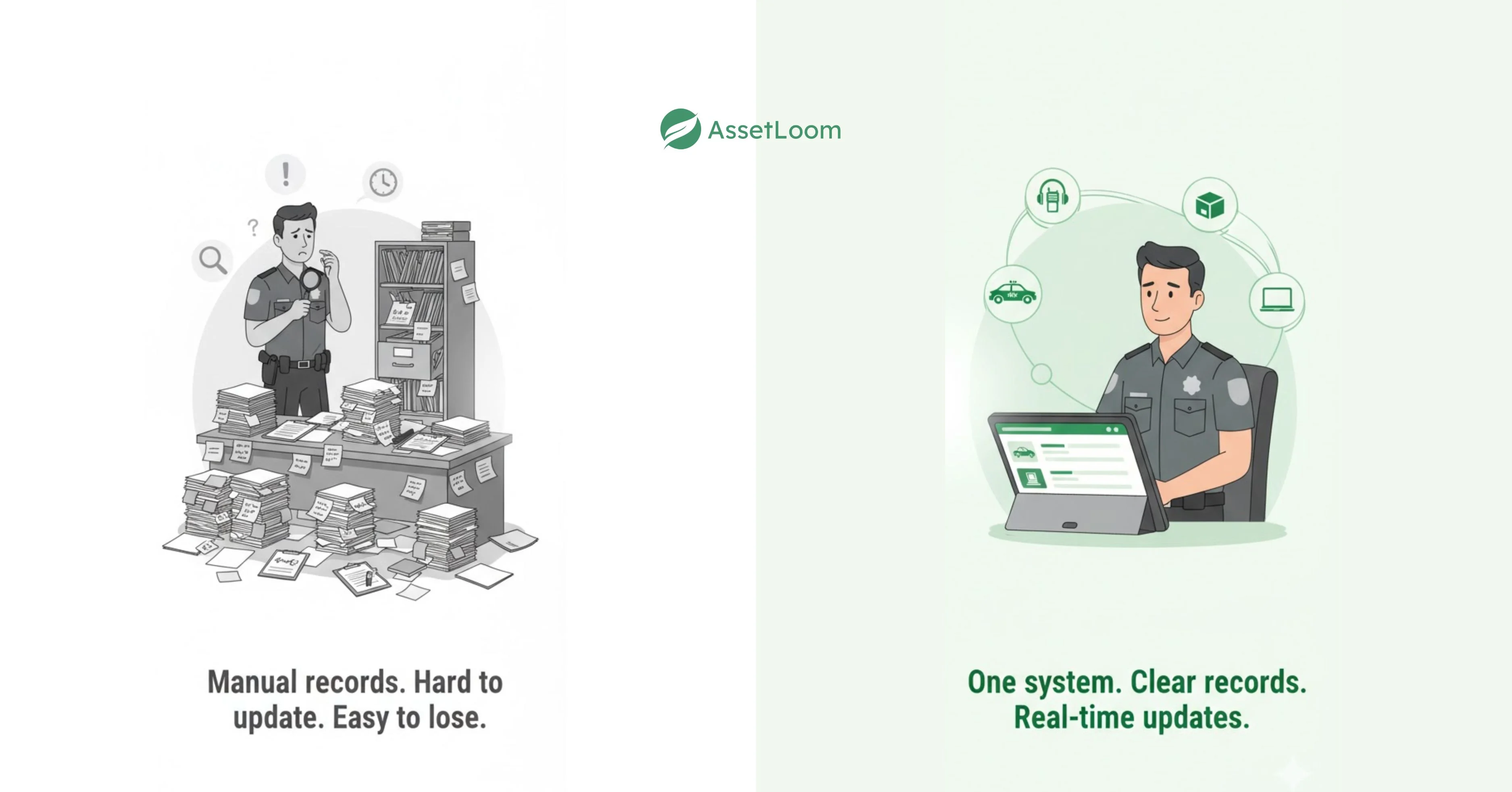 AssetLoom provides an easy and reliable way for police departments to manage their equipment in one place. It helps teams track every item — from vehicles and radios to body cameras and firearms — with clear, real-time updates.