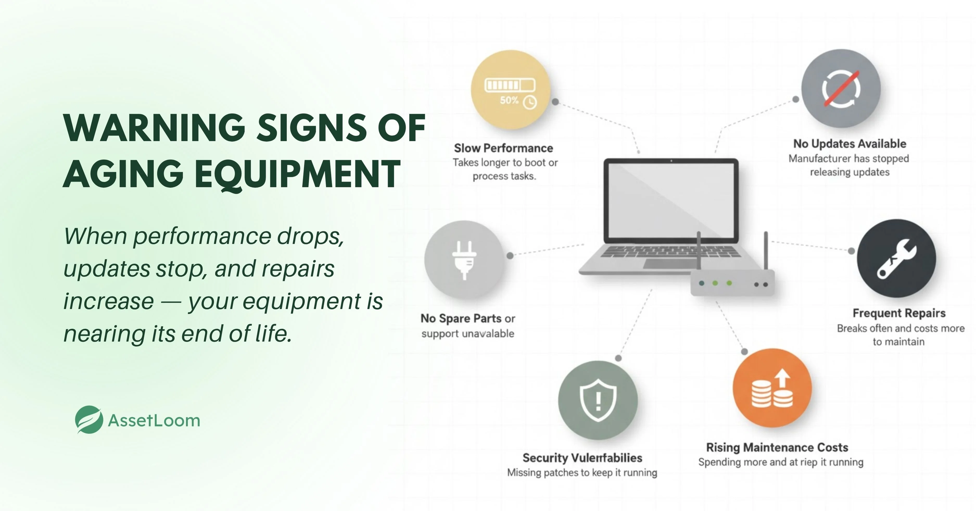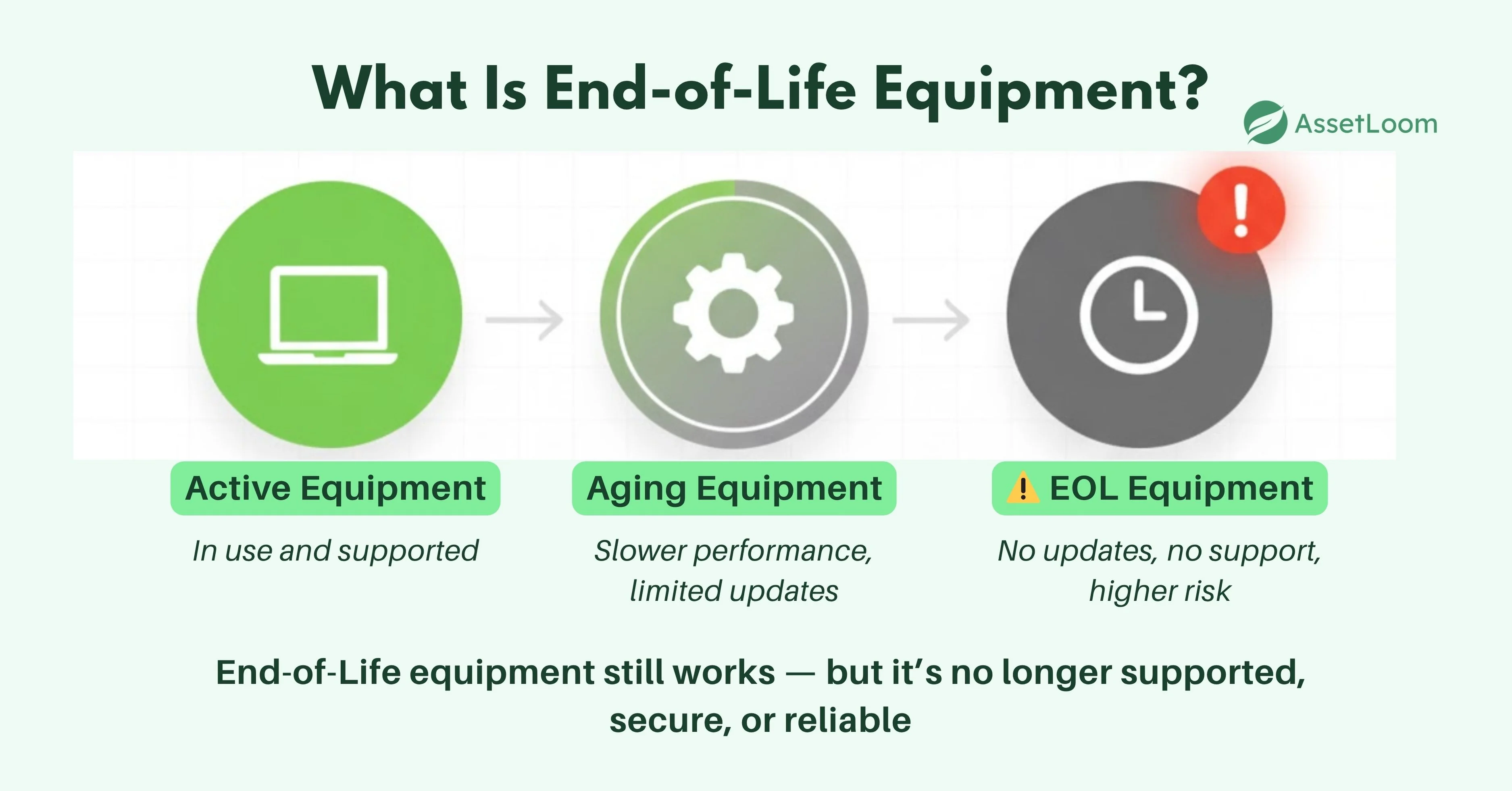 For example, think about an old laptop that still turns on but can’t handle the latest software updates. Or a server that’s been running for years but no longer gets security patches. These are signs that the equipment has reached its end of life.