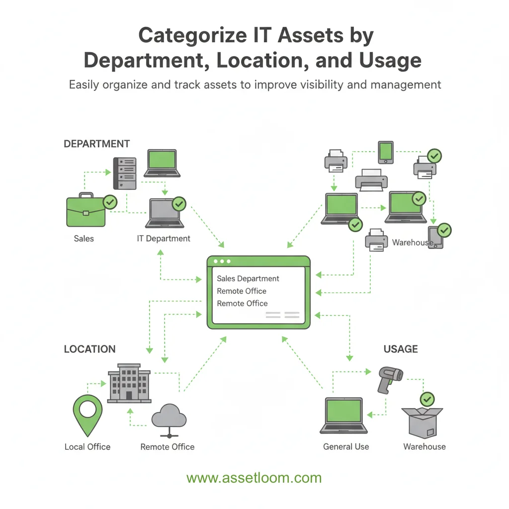 Organizing your IT assets by clear categories can greatly improve visibility and control. When assets are grouped based on department, location, and usage, it becomes much easier to track, manage, and retrieve them when needed.