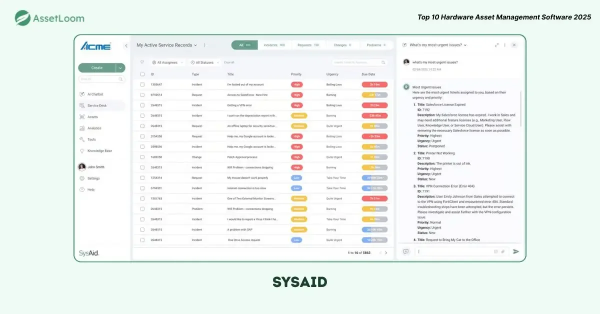 SysAid is well-suited for organizations seeking a single vendor for IT service and asset management.