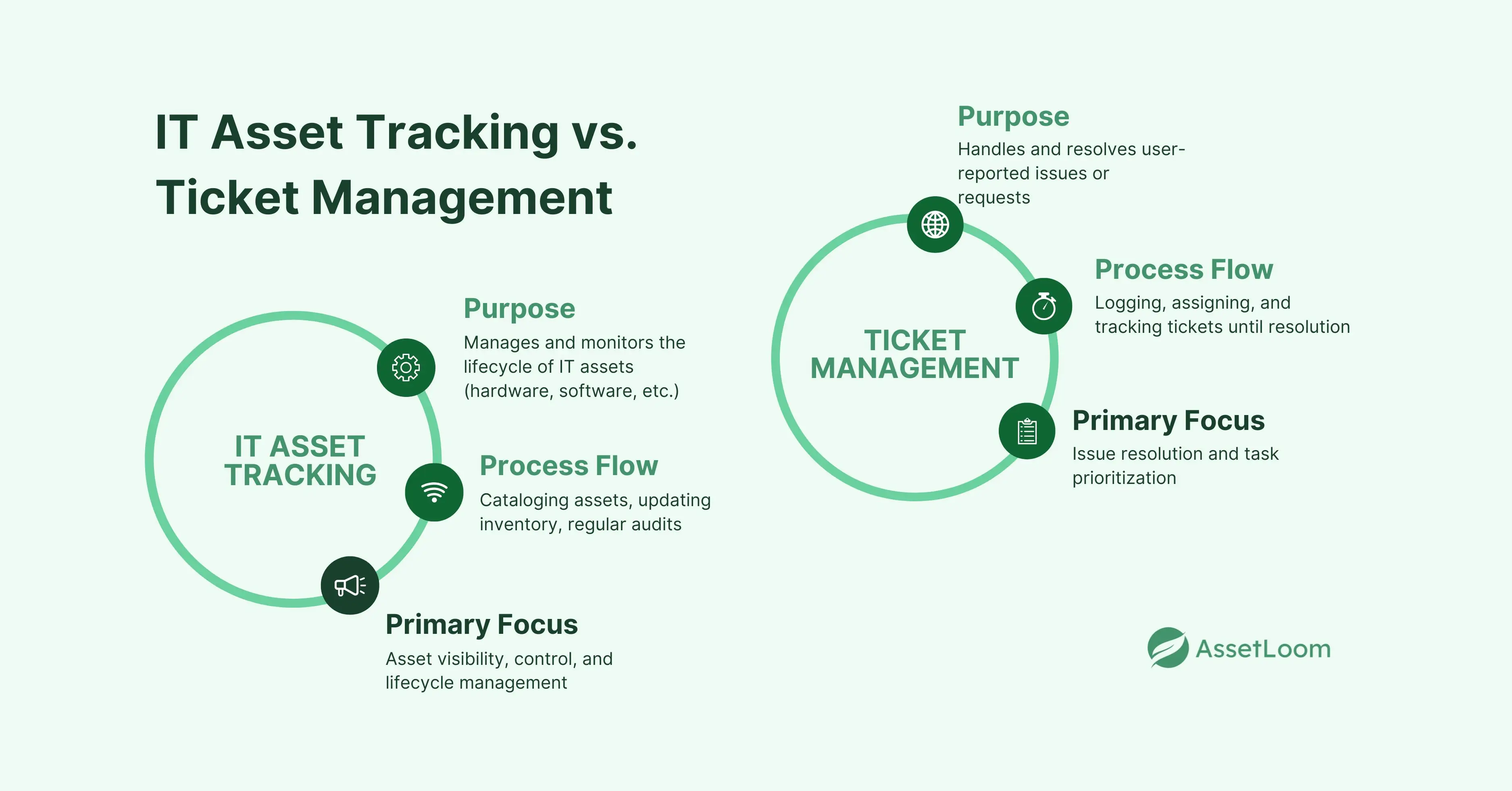 While both IT Asset Tracking and Ticket Management are crucial to IT operations, they serve different purposes and focus on distinct aspects of IT management. Understanding these differences can help you better organize and streamline your processes.